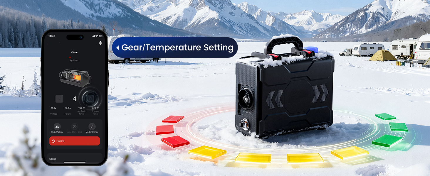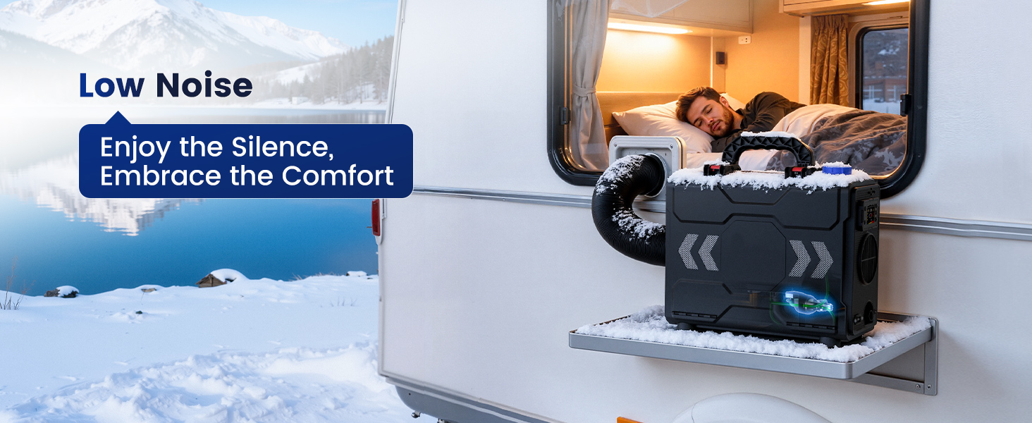 - 【Quiet Operation with Silent Fuel Pump】 The air duct outlet remains the primary noise source (65 dB, equivalent to normal conversation), but our upgraded silent fuel pump eliminates the irritating ticking sounds found in traditional heaters. Perfect for uninterrupted sleep in vans, cabins, or tents. Enjoy reliable warmth all night, without the disturbance of a humming heater.