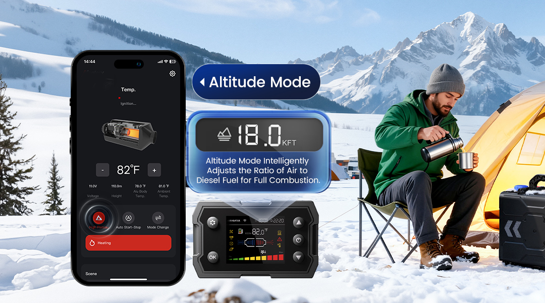 - 【All-Terrain Adaptability & Flexible Power】Automatically adjusts combustion to maintain optimal performance at elevations up to 5500 meters, with real-time altitude display on the panel. The included AC/DC adapter offers convenient compatibility with standard household outlets and RV power sources for versatile installation.