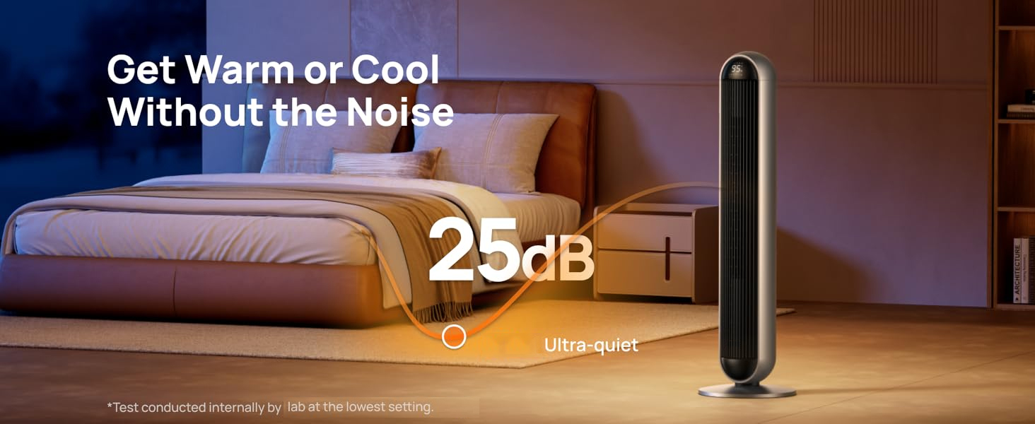 - Choose Quietness, Choose: Powered by TurboSilent aerodynamic design, this fan for bedroom brings warm air at an unhearable 25dB, making this tower fan ideal for spaces that need warmth and silence like offices or for a good night sleep at home